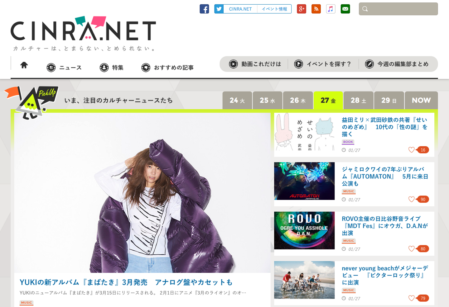 CINRA.NETは、音楽、アート・デザイン、映画、演劇、書籍などのカルチャー情報を扱うWebメディアです。ニュースやインタビューが毎日公開されています。