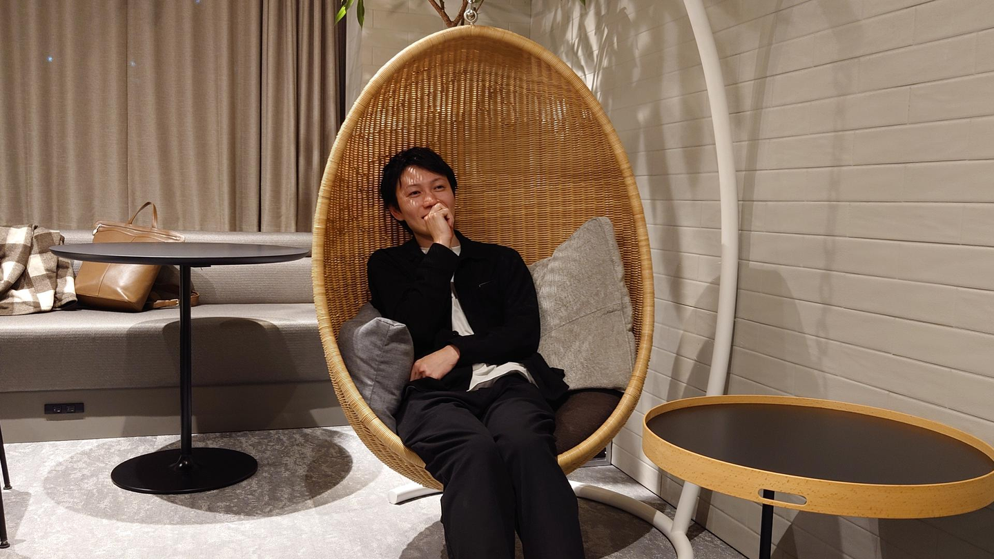 たまご型の椅子に座るエンジニア・菅田(すがちゃん)もご満悦の様子!