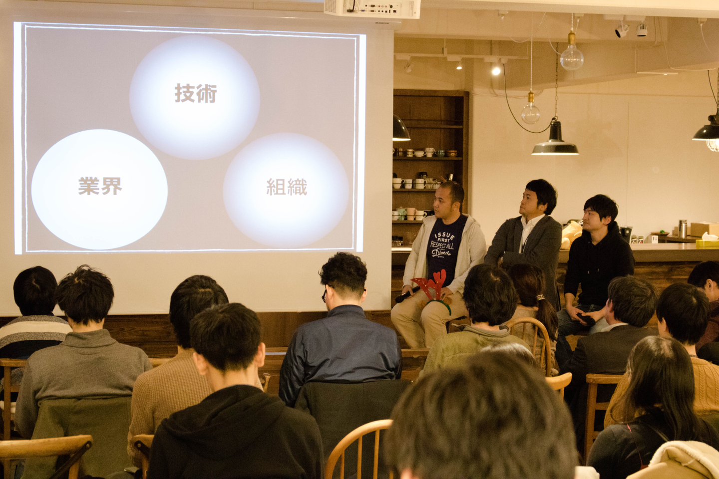 イベントスタート後は、まずは各社のバックグラウンドを知っていただくために、企業&業界説明を行いました。トレタさんは飲食業界、JapanTaxiさんはタクシー業界、Classiは教育業界...と、それぞれの業界が抱える課題に対し、どのようなプロダクト開発で課題解決に取り組んでいるのかをお話しいただきました。