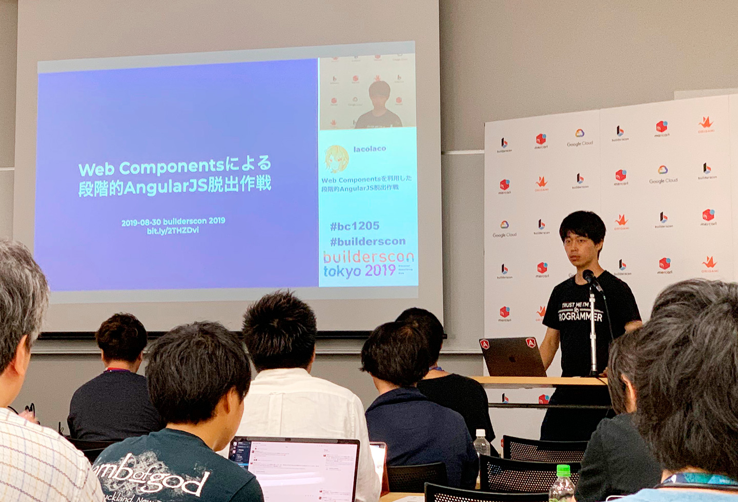またClassiの技術アドバイザーとして参画いただいているlacolacoさんも登壇。「Web Componentsを利用した段階的AngularJS脱出作戦」というタイトルで講演を行いました。