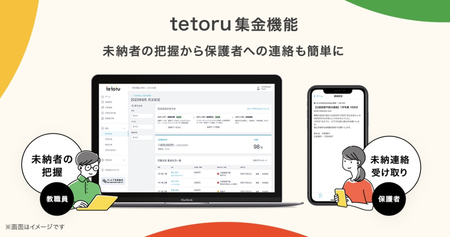 2024年度より、教職員の負担軽減に貢献する「tetoru(テトル)」が、新たに集金機能の提供を開始します!
