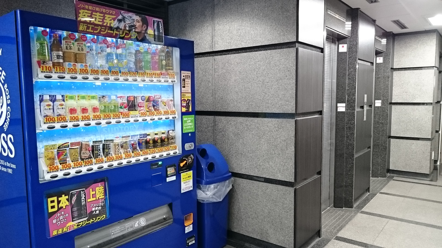 そしてその隣が自動販売機です。外に出ずして飲み物が買えます。しかも100円からとお得な自販機です。