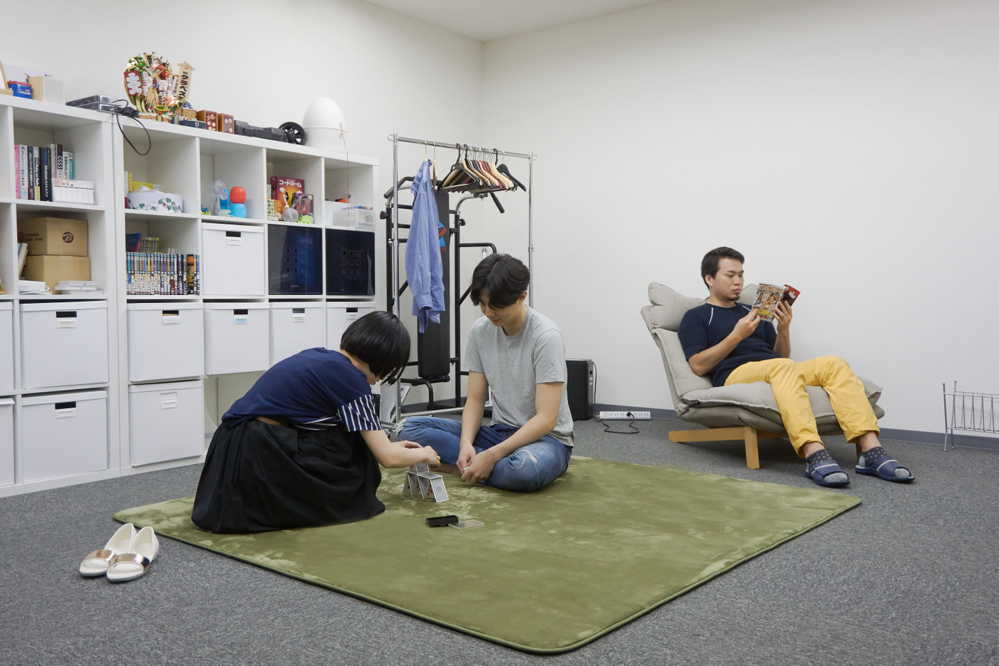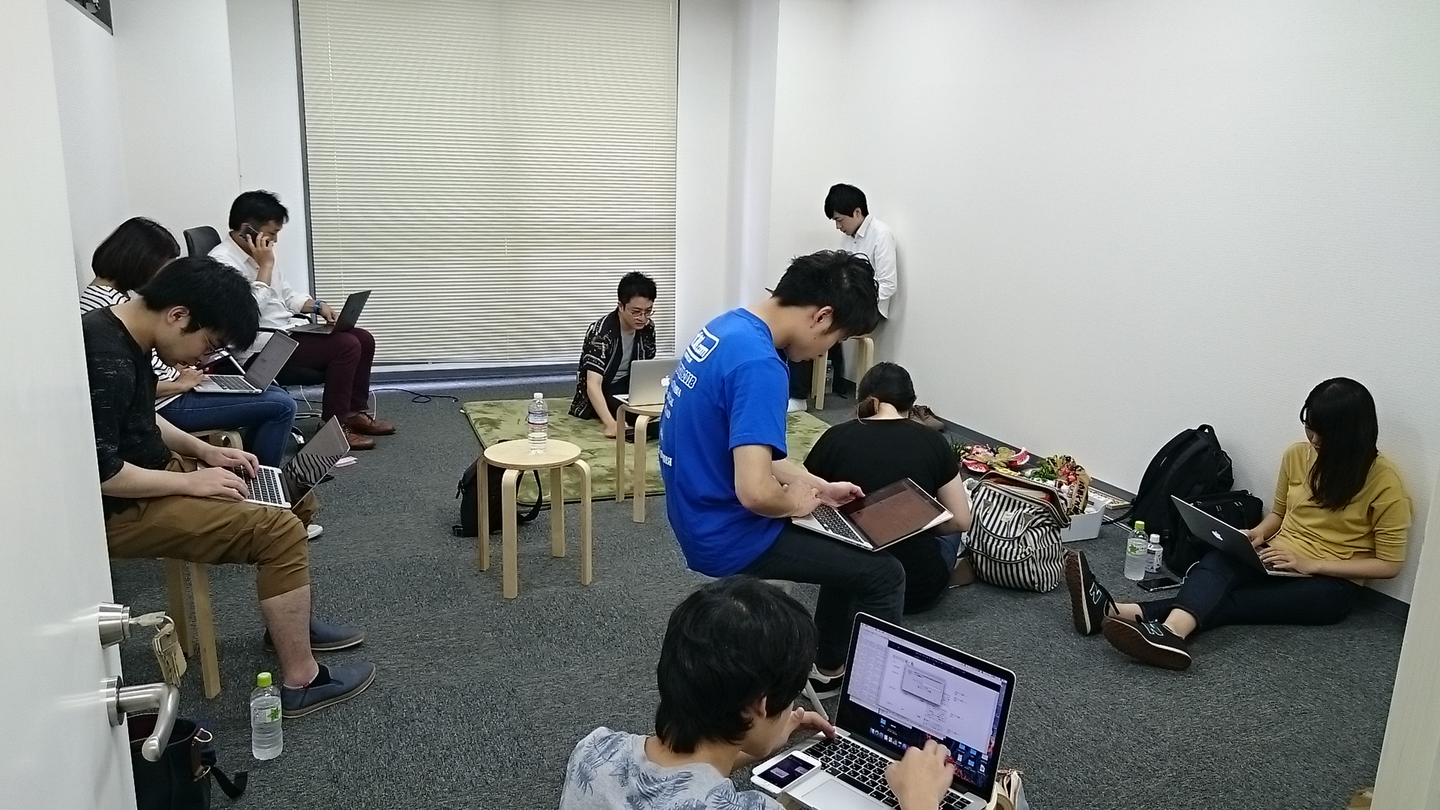 PCあればどこでも仕事ができる私達。引越し当日も荷物が届くまでお仕事するみんな。デスクがないので膝の上にPCをだったり、寝転びながらだったり。 なんだか部室感が漂います。