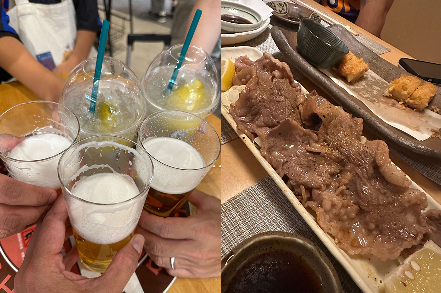 広島名物 左:ビールスタンド重富&レモンすたんど島ごころ 右:コウネ焼き