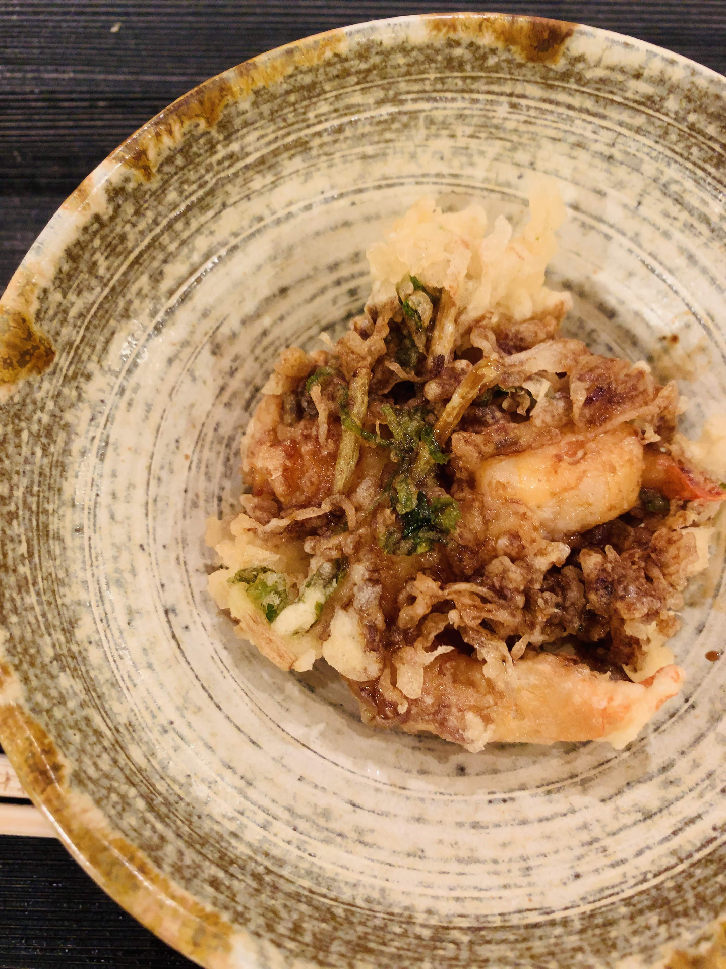 締めに出てきたのは天丼(これがまた絶妙なサイズなのよ)。