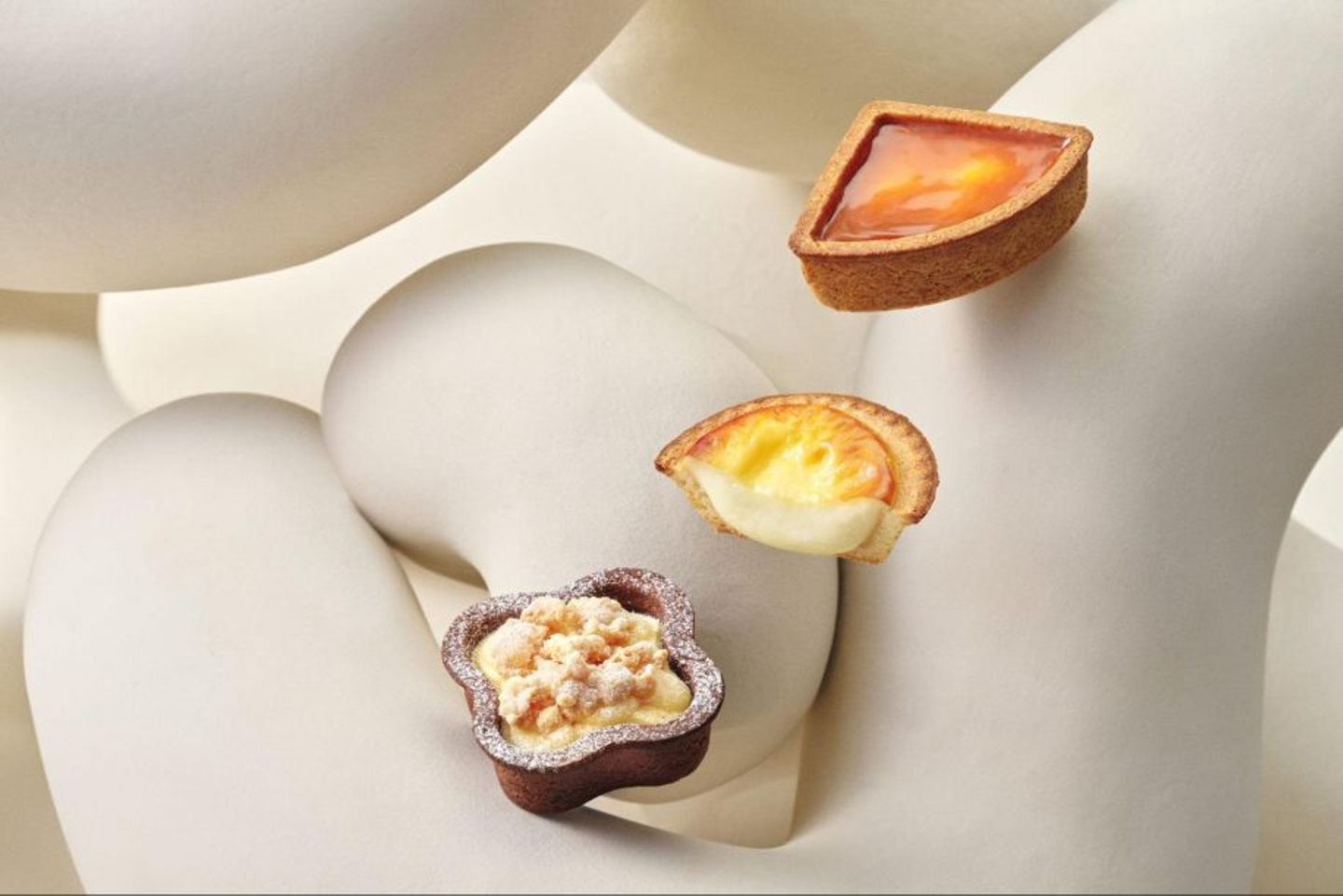 馬場:新商品の「焼きたてタルト ミルキーマスカルポーネチーズ」は、マスカルポーネならではの口当たりの軽やかさやクリーミーさを、より引き出した一品です。北海道産のマスカルポーネチーズムースに、やさしい甘さのミルクソースを重ね、ココアとアーモンドパウダーを練り込んだタルトカップで包みました。仕上げにトッピングしたサクサクのクランブルがアクセントになり、食感の楽しさも味わえるタルトに仕上げています。