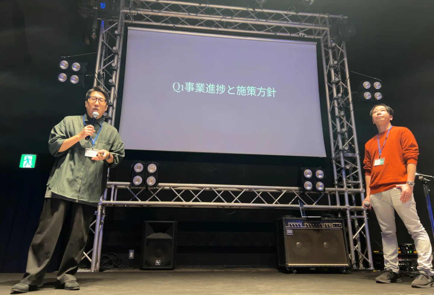 12月のある金曜日。銀座のイベントホールで四半期に一度の社員総会が開催されました。いつもはオフィスに集合してグループワークや各部門の取り組みを発表するのが通例となっていますが、1年の締めにおいて、さらに社員同士の絆を強くする機会としたいという願いもあり、外部会場での開催となりました。総会実行委員が張り切って仕込みや準備を行っており、当日早めに到着した社員たちもどことなく浮足立った雰囲気でした。