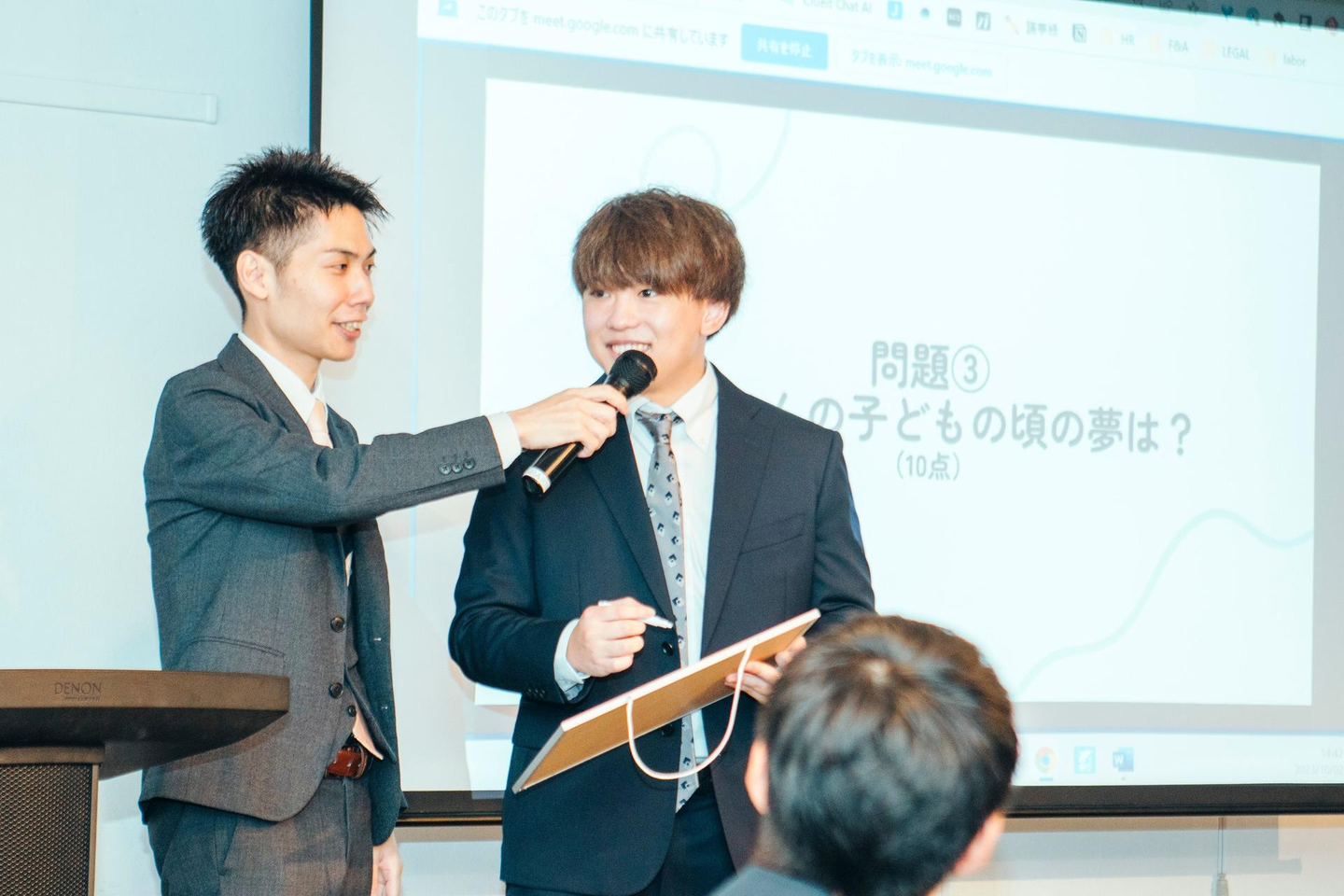 社員のお子さんを当てる問題や内定者3名に関する問題など難易度が高いながらも大いに盛り上がりました!
