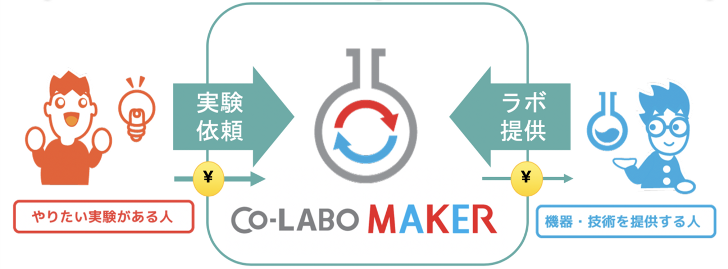 やりたい実験があるけど研究設備やラボがない研究者を、研究設備はあるけど資金が必要な研究室や企業をつなげ、ラボや実験機器を一定期間使えるサービスを提供しています。