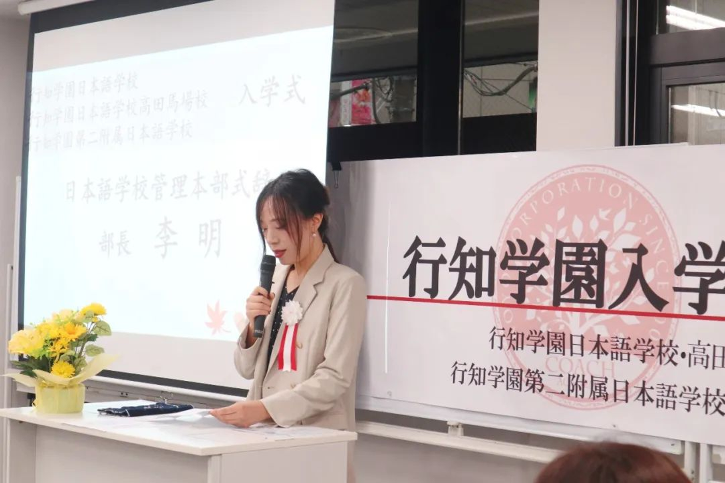李部長は、スピーチで学生たちを歓迎し、彼らが行知学園を夢の第一歩として選んでくれたことに感謝の意を示しました。また、李先生は12年前の自身の留学体験を共有し、新入生に対して貴重なアドバイスをしました。まず第一に、新しい環境で問題や困難に直面した際には、積極的に周囲の人々、特に行知学園の先生たちに助けを求めるよう勧めました。第二に、日本語学校での学習中、なるべく日本語で話し、間違いを恐れないよう強調しました。なぜなら、これが学生たちの日本語能力の成長と向上の貴重な機会だからです。同時に、学生たちは生活の中で積極的に人とコミュニケーションをとり、携帯電話に頼りすぎないよう勧めました。これによって、学生たちはより良い社交スキルを身につけ、人脈を築くことが期待できます。最後に、新入生全員に対して大いなる期待を寄せ、日本での生活と学習を堪能し、自分自身の人生の道を探求し、自己完善と向上を続けるよう勧めました。行知学園の全教職員は、学生たちの進学の道を全力でサポートします。