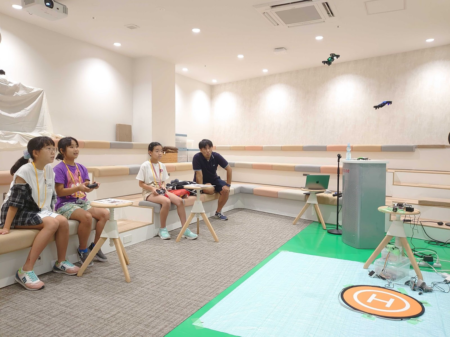 参加した社員のご家族のお子さんたちは、初めて操作するトイドローンに夢中になっていました。