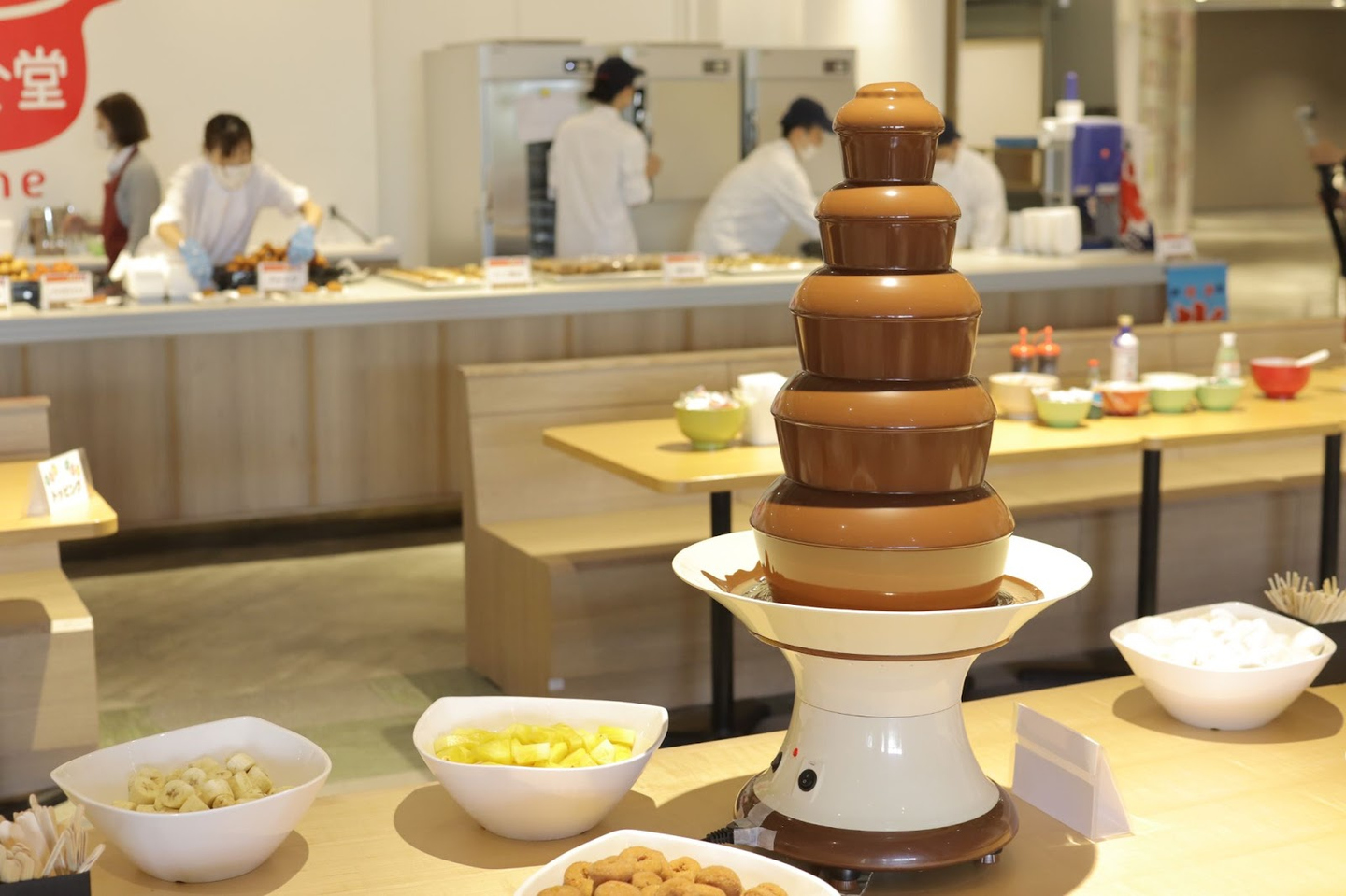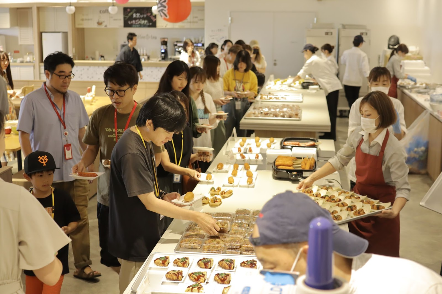 社員食堂「ココネデリ」では専任のシェフたちが腕をふるい、イベント特製メニューとしてタコ焼き、焼きそば、お好み焼きといった夏祭り定番の屋台系フードが多数用意されていました。