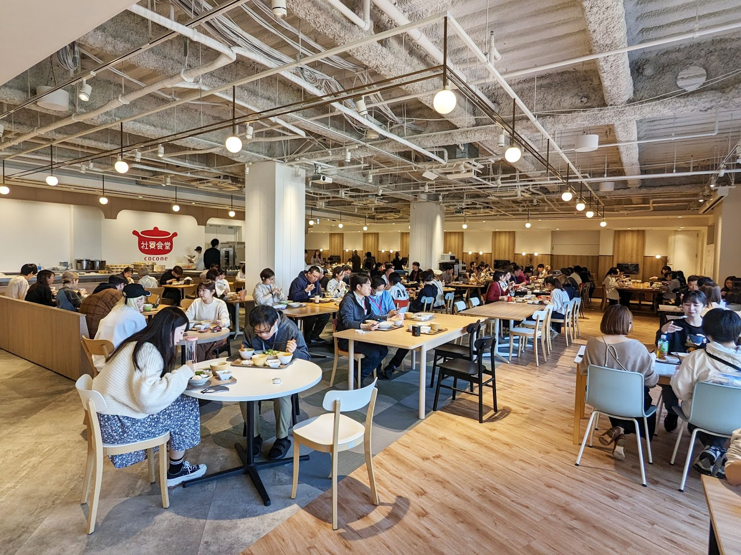 今回、オフィス内ジムの取り組みが評価され受賞しましたが、ココネのウェルビーイング施策の中でもう一つ中心的とも言える存在が、本格的な厨房を備えた社員食堂「ココネデリ」です。社員食堂では社員の健康に配慮したサラダバー付きランチを毎日無料で提供しています。調理スタッフは委託ではなく、「正社員を含む直接雇用」。だからこそアレルギーや宗教上の制限に配慮する等、各社員に合わせたきめ細やかな対応が可能になっています。また、正社員雇用によって、余った食材を翌日にアレンジして提供する等のフードロス0を目指す運営に取り組むこともできます。カフェやBarスペースも併設しており、そこで働くバリスタやバーテンダーも直接雇用のスタッフです。