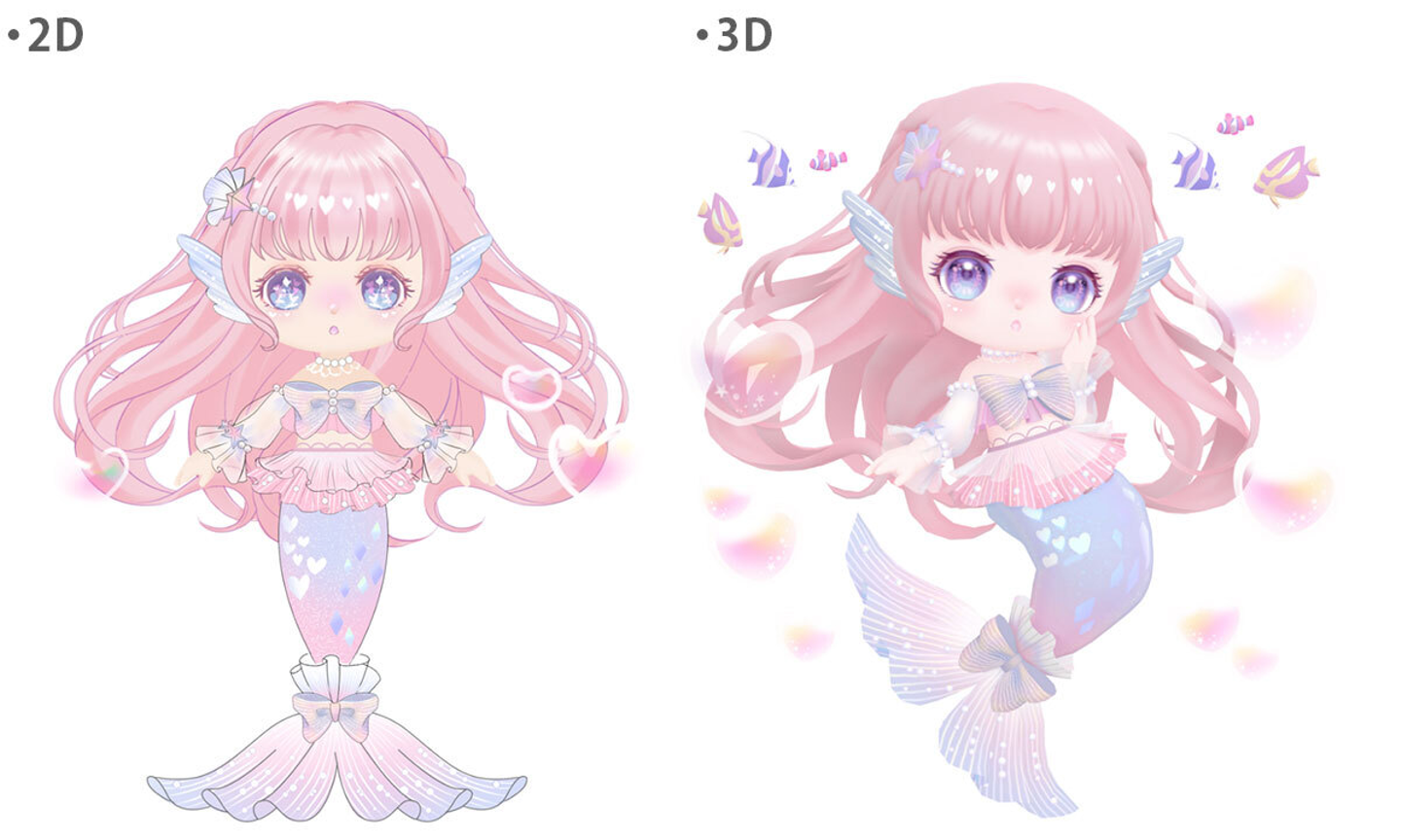 「恋に夢見るマーメイド♡」2D、3Dデザイン画。