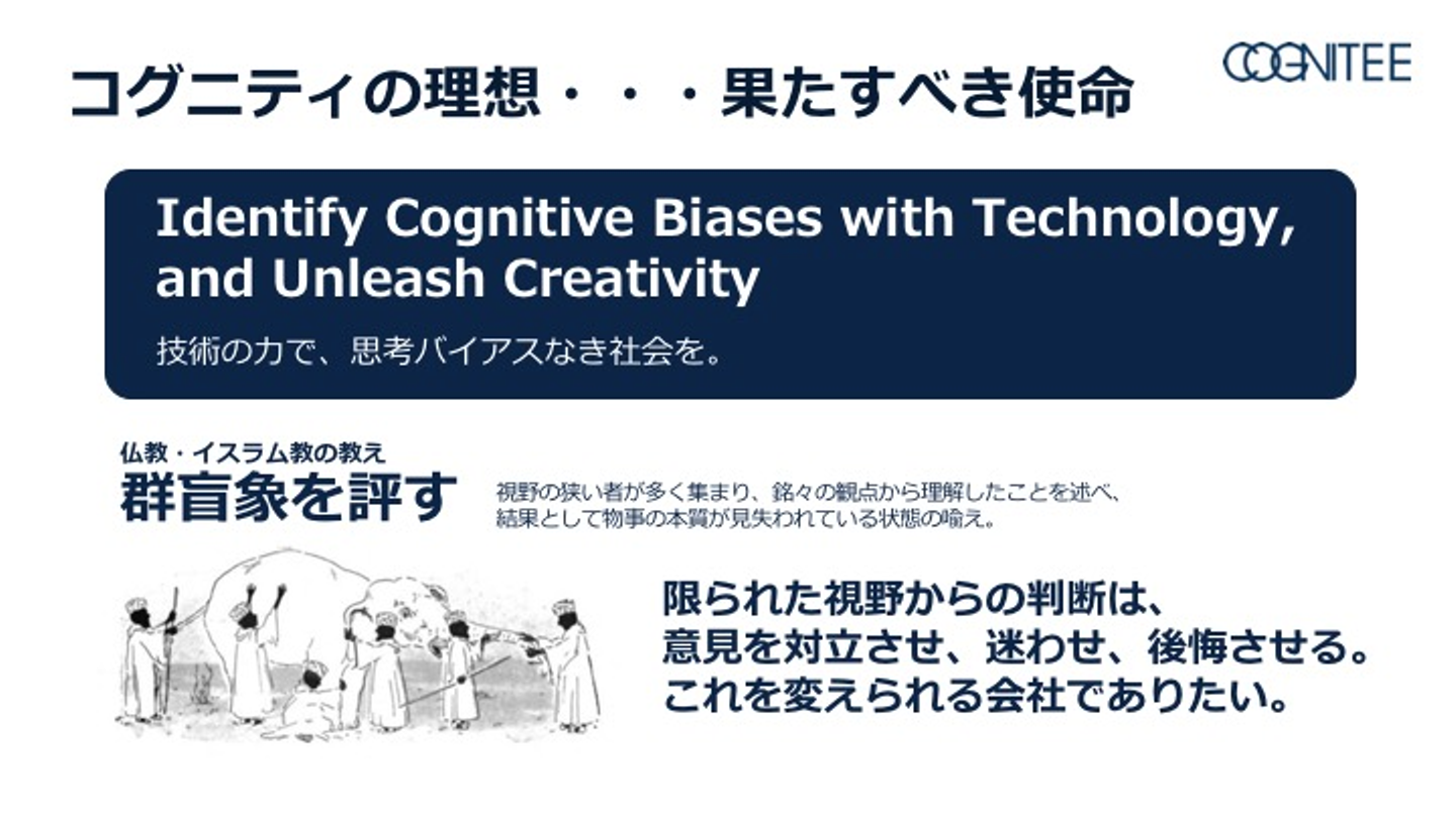 2013年3月、コグニティを設立した時に2つの設立趣意を定めました。