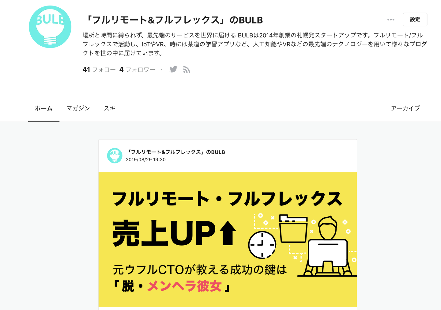 この度、「フルリモート ・フルフレックス」のBULBが働き方改革に一石を投じるため、公式noteを開始いたしました。