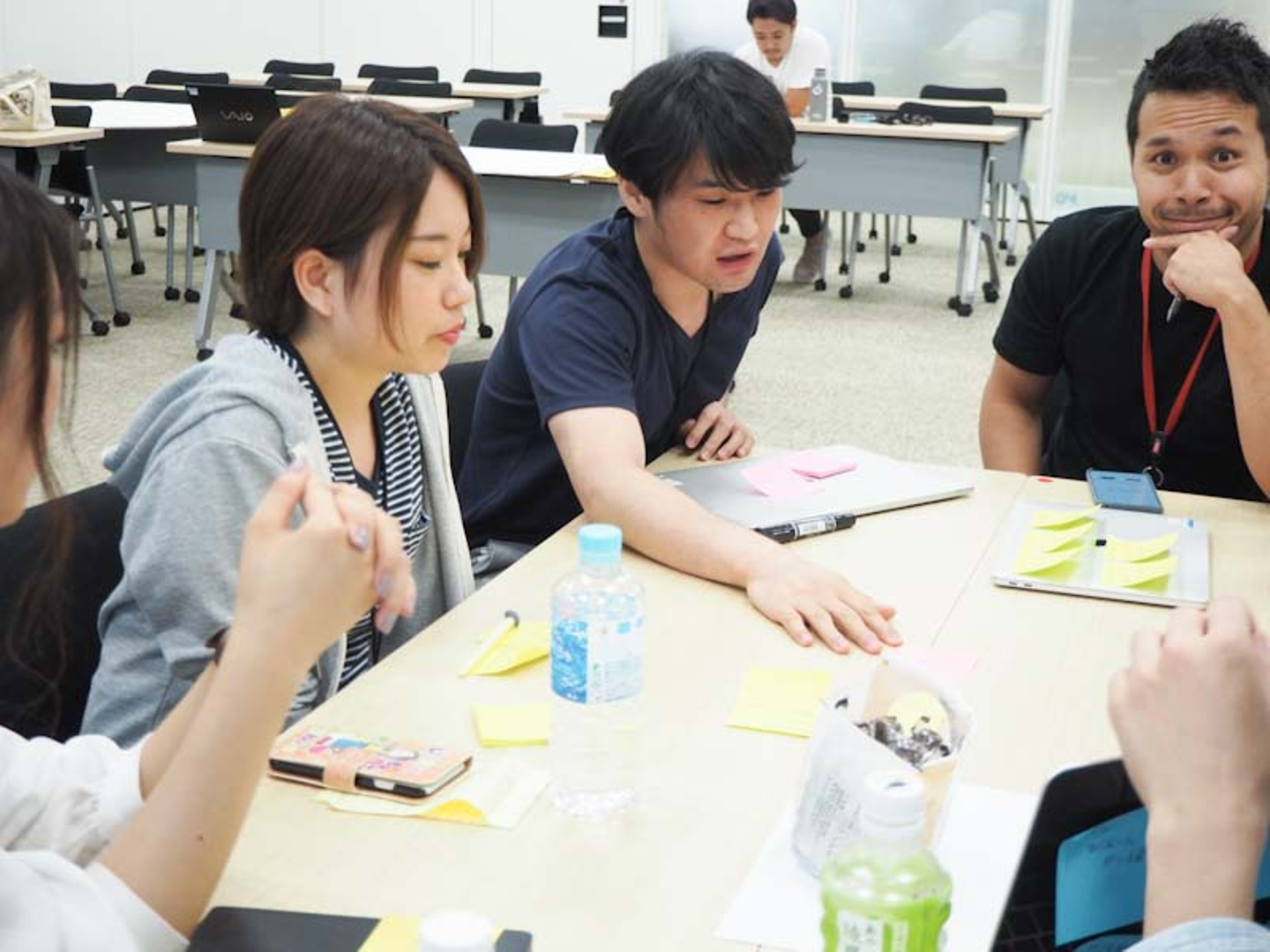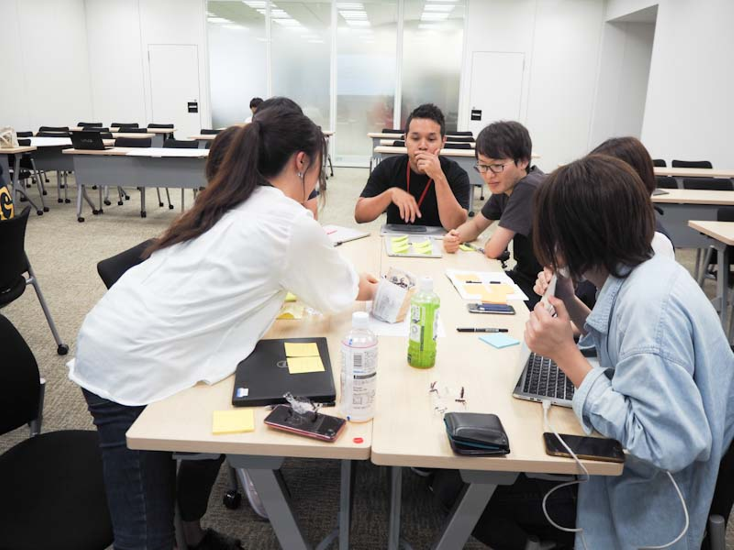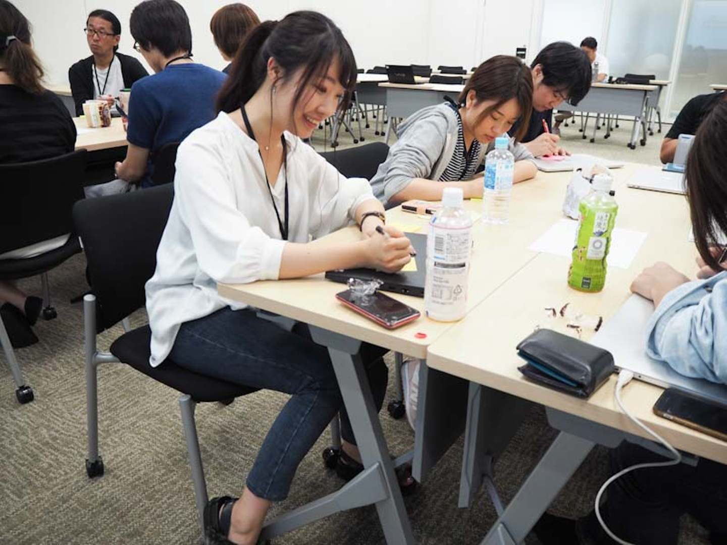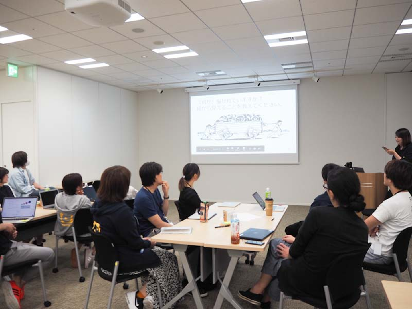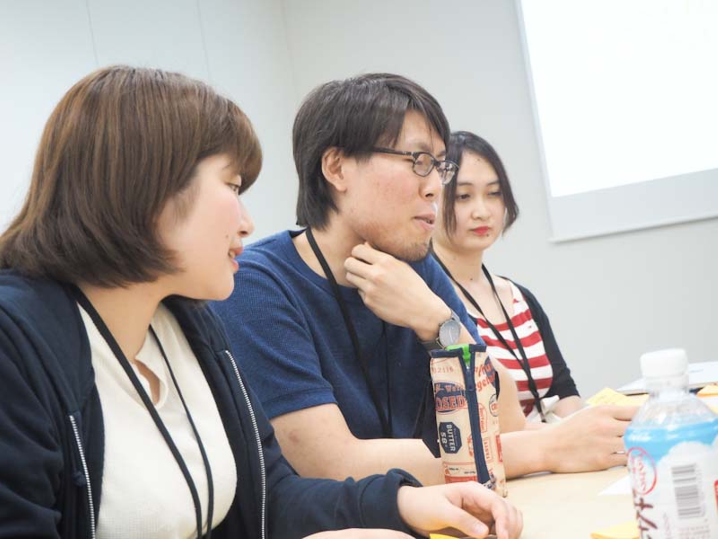 その後、個人で考えた内容を2チームに分かれて発表&講評。ファシリテーターはコミックスマートの先輩社員が務めました。