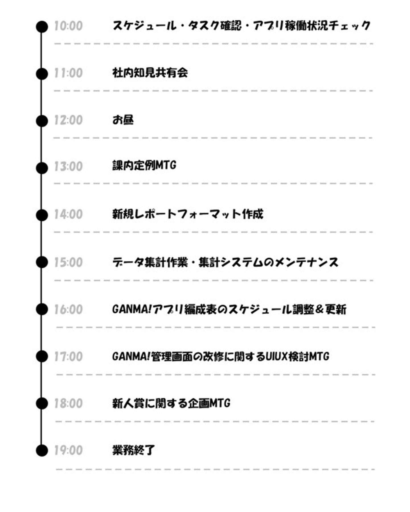 マンガアプリ「GANMA!」のバックエンドのオペレーション領域と事業におけるオペレーションサポート業務をメインに、社内に眠るさまざまな課題を解決し会社全体の価値循環を作り出す、いわば会社の潤滑剤です。