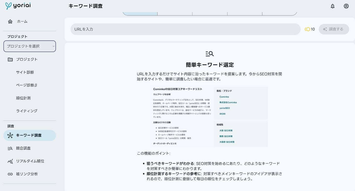 西奥さん:「yoriaiSEO」は、弊社が開発しているSEO支援ツールで、シンプルな機能と感覚的にわかりやすいUI設計になっているのが特徴です。