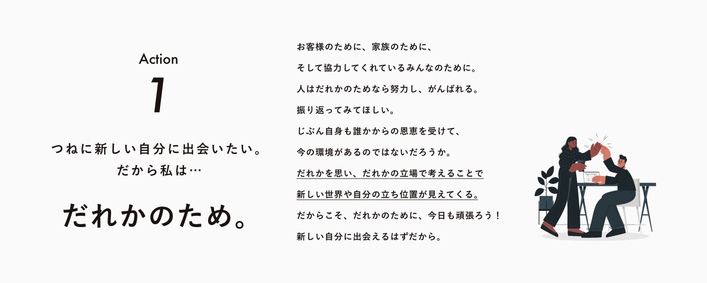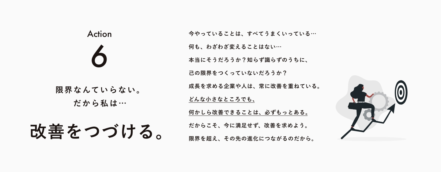 それを基準として設けることで、人としての成長と会社としての成長につながるのではないかと思っています。