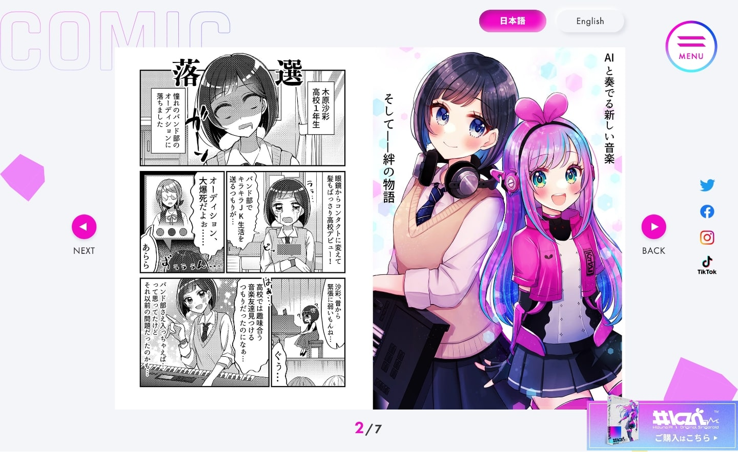 今回サイト内で漫画が読める仕様を初めて行ったのですが、これは制作でも最後まで検討した要素のうちの一つでした。というのもキズナアイちゃんは日本だけでなく世界で人気があるキャラクターで、日本と海外では本を開く向きが違うのでどちらを基準にするかで二転三転したんです。