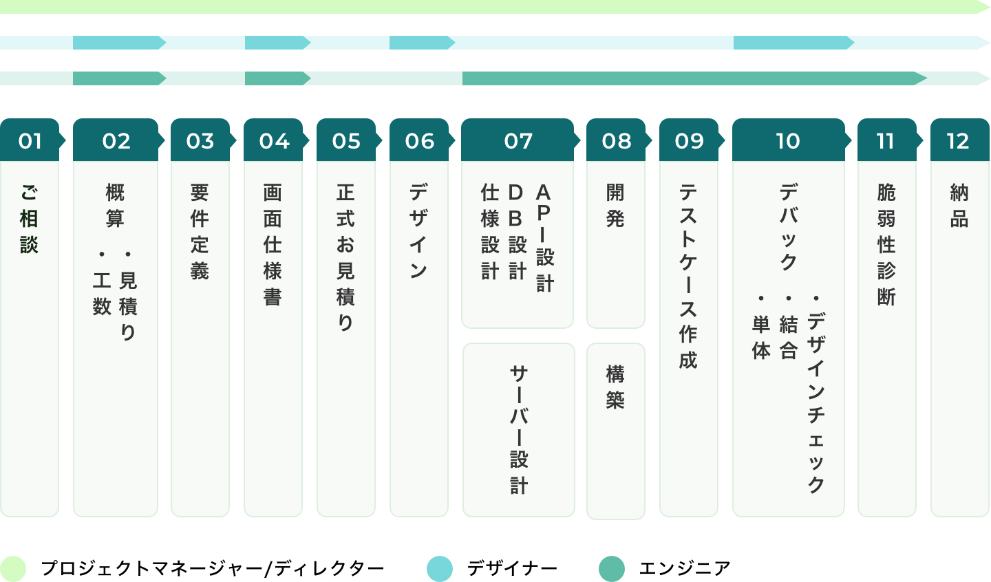 大まかな流れは日本でのシステム制作と変わりません。ただ、伝言ゲーム的にベトナム側に伝わったクライアントの要望を元々の希望通り精度高く再現するため修正の段階が増えることもあります。