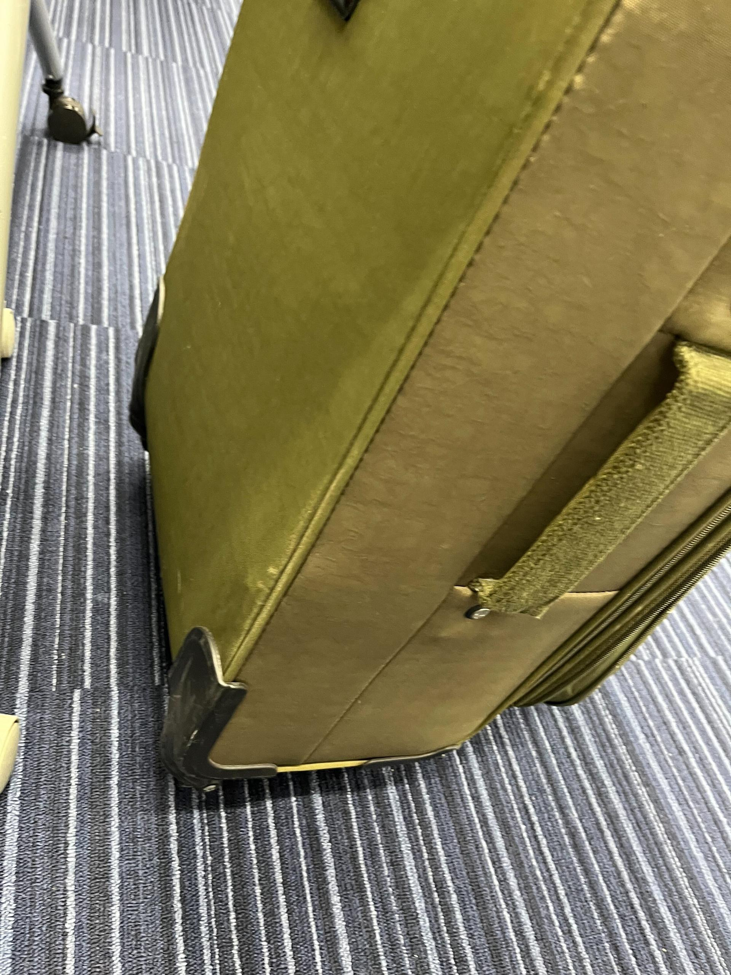 さらにスーツケースも疲れたのか、タイヤが完全に壊れてしまいました💦 まっすぐ立たない …