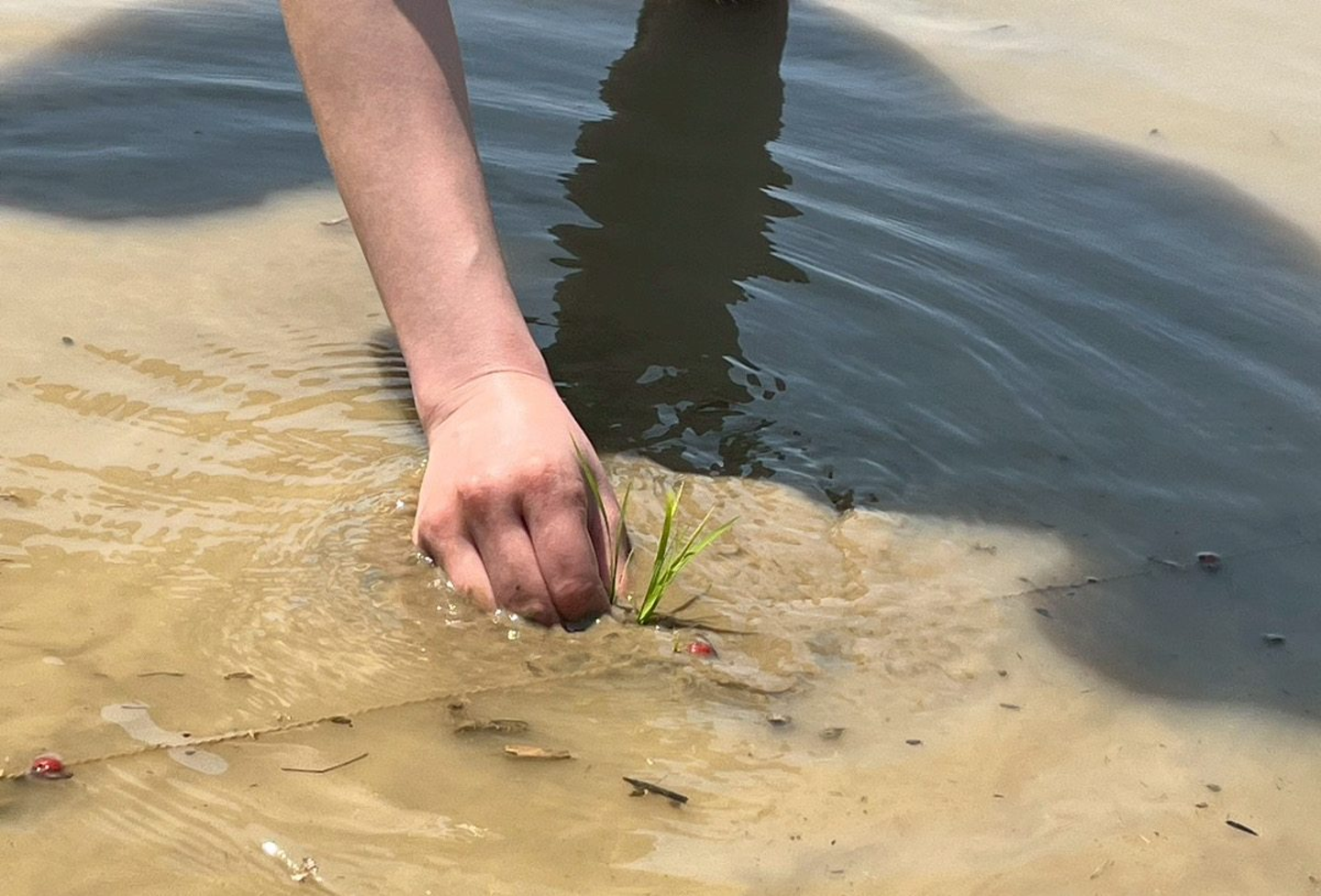 一株ずつ丁寧に手で植えていく。地味なようで、集中力がいる作業。