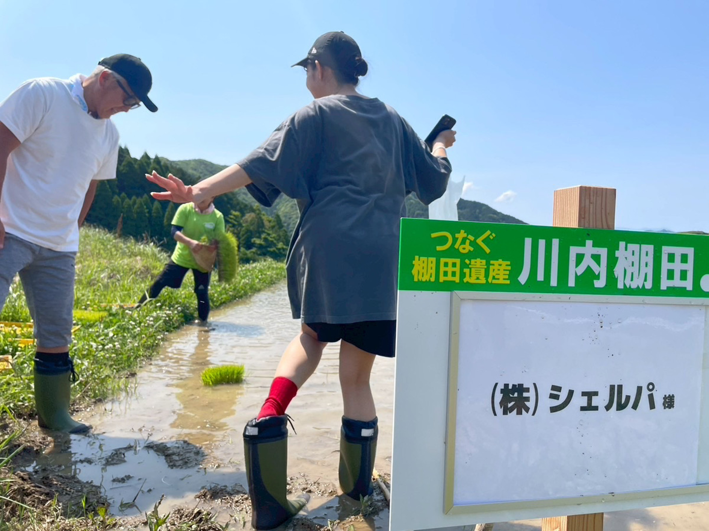 先日、シェルパのメンバーはオフィスを飛び出して、佐賀県武雄市にある棚田で、田植えをしてきました。