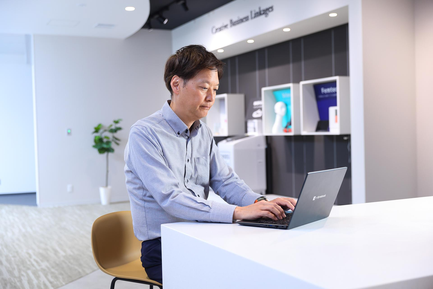 AIoT家電の開発業務を経て、社内ITに関わるプロジェクトに携わったのが約7年前のことです。当時、「スマートフォンを使った新しい内線システムに切り替える」というプロジェクトが立ち上がり、Linuxに詳しかった私が、そのサーバーソフトの開発を任されました。その後、チャットシステムやWeb会議システムの開発を経て、社内ITを担う現在のIT戦略統轄部に異動しました。異動後1年ほど経ち去年の10月に発足したのが、今の『システム開発グループ』。ここで私は、次なるミッションに取り組むことになります。