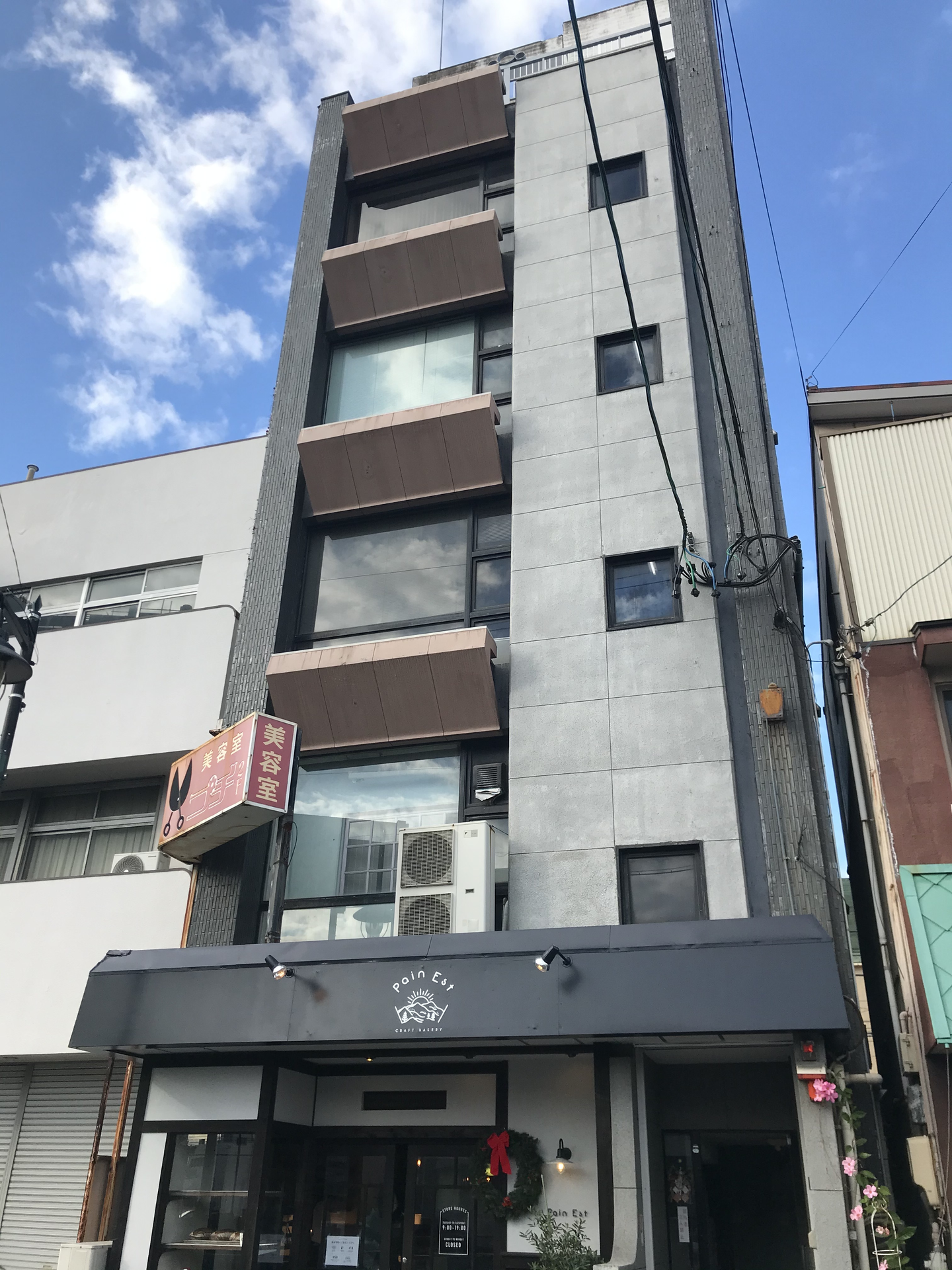 オフィスは5階(ワンフロア)で、一階のパン屋さんでおいしいパンが食べられます。