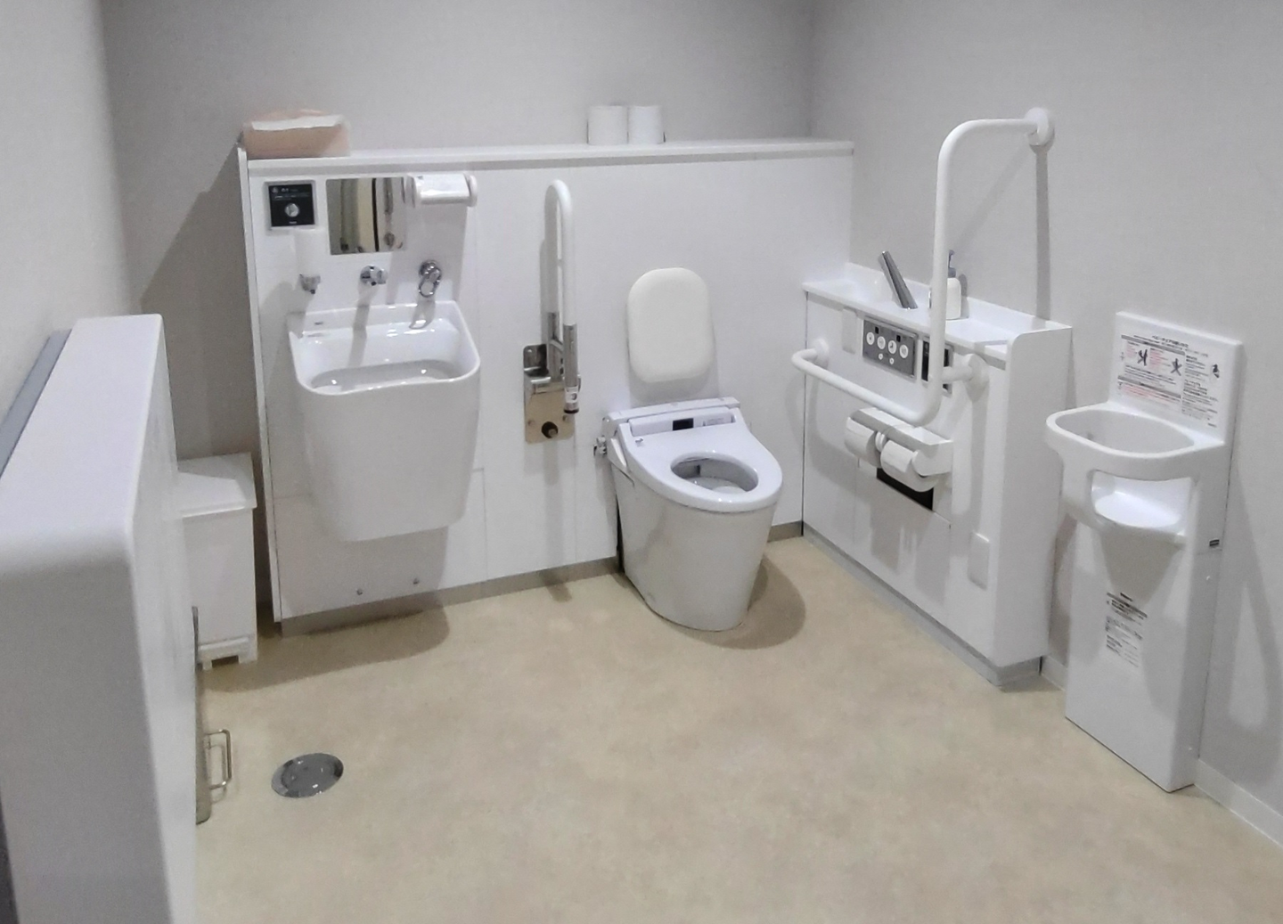 多目的トイレにはおむつ交換台もあります。子連れ出社でも安心。