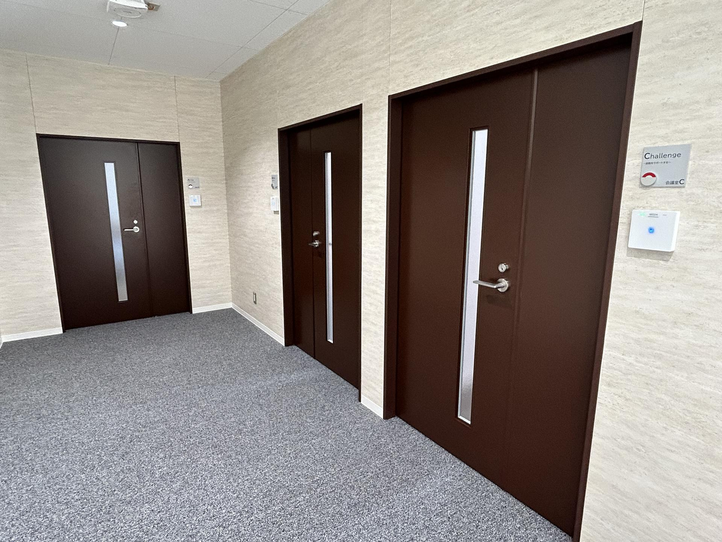部屋によって雰囲気が異なるおしゃれな会議室。それぞれに「Active」「Believe」「Challenge」と名前がついています。それぞれ、「納得いくまで対話する」「挑戦をサポートする」「個を大切にする」というEDUCOMのバリューをイメージしています。