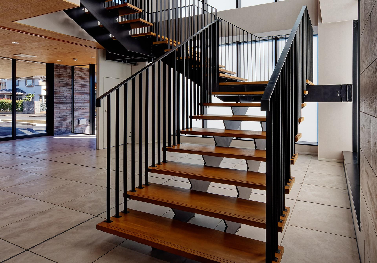 2階へ続く螺旋階段。エレベーターもあります。