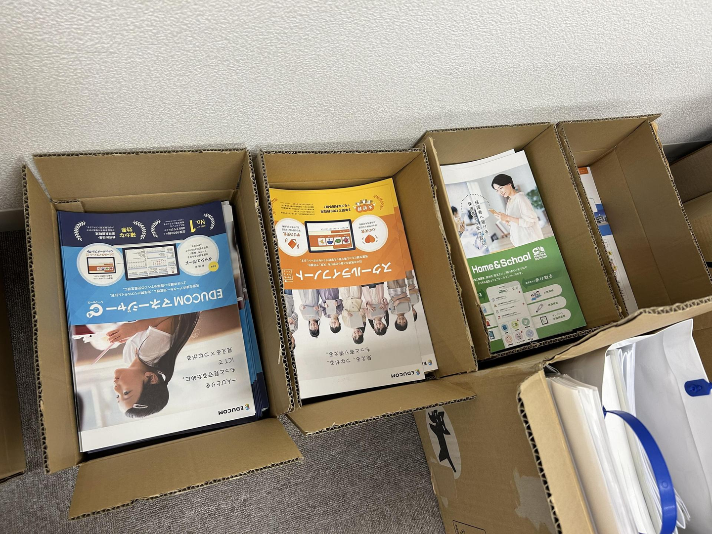 営業メンバーがお客様先に持っていく製品パンフレットの山を発見!