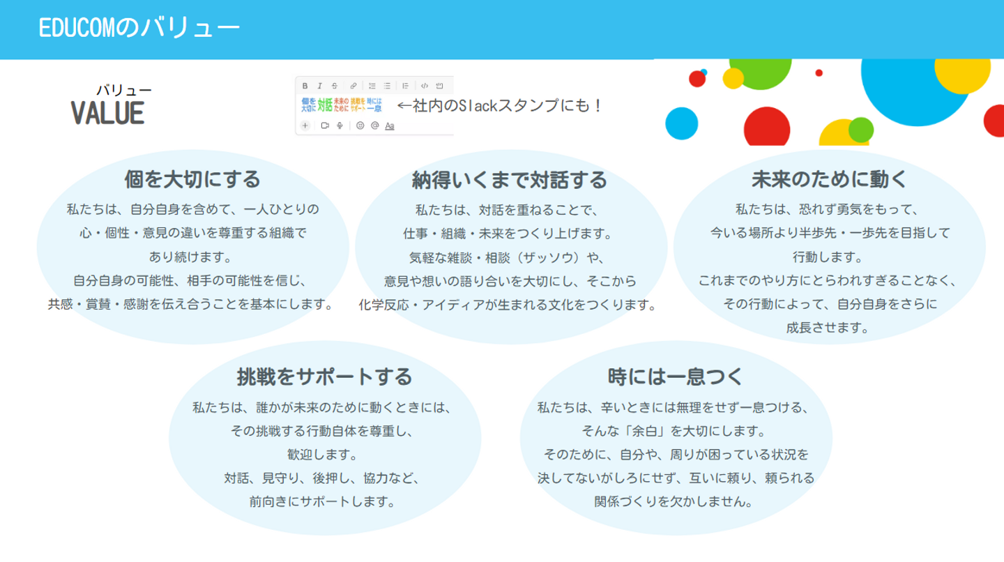 ▼EDUCOMの5つのバリュー