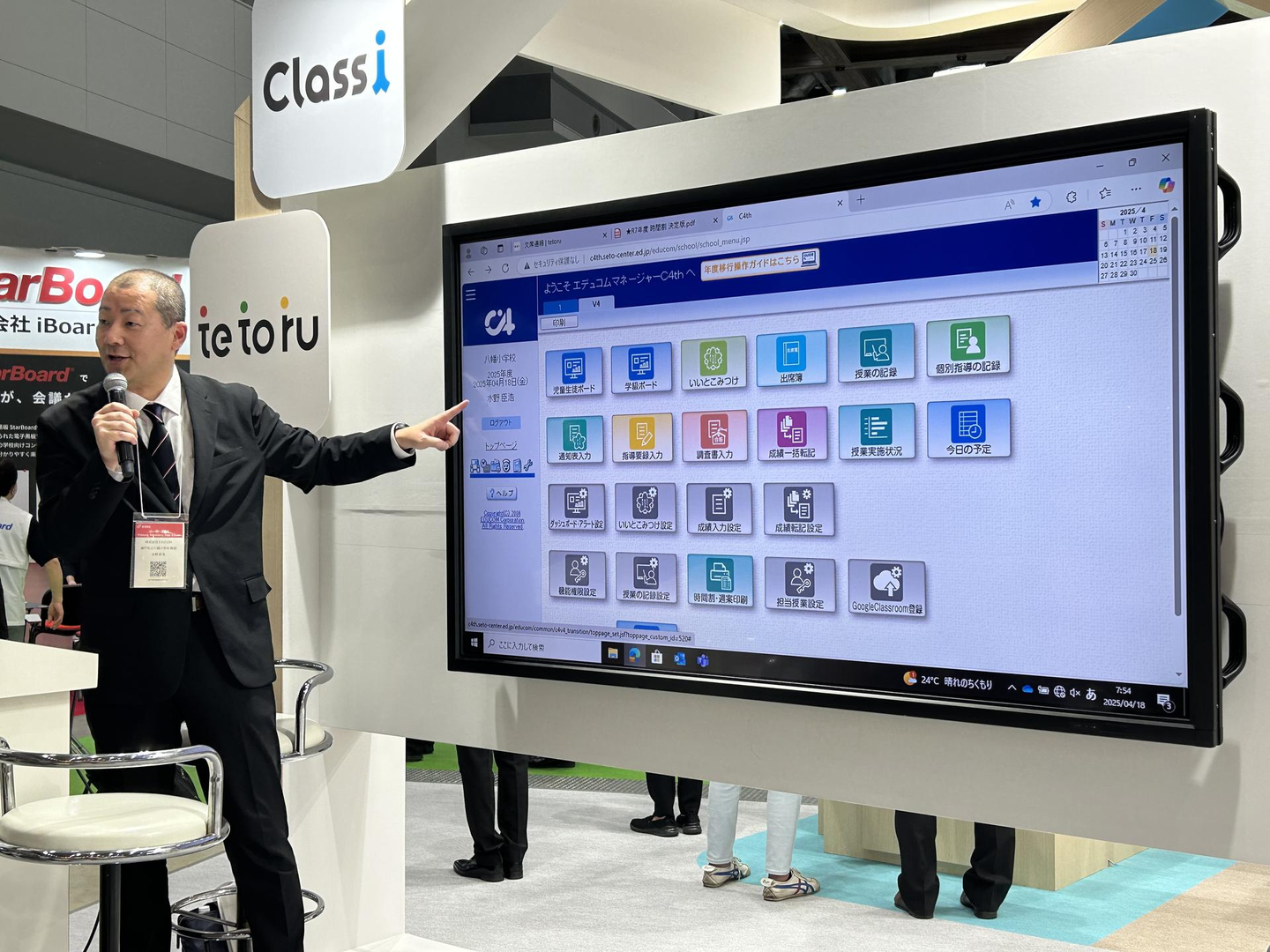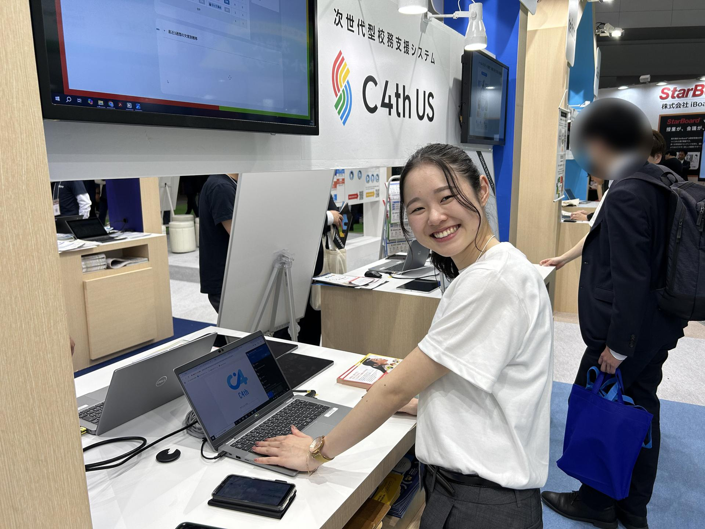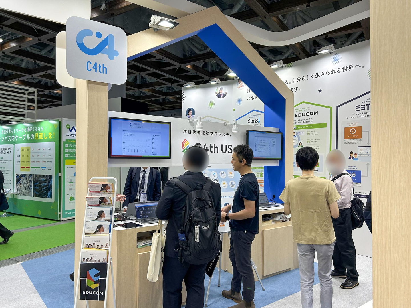 校務支援システム「C4th」を中心にご紹介し、ベネッセの小中学校向けICT学習ソフト「ミライシード」、Classiの小中学校向け保護者連絡ツール「tetoru」との連携についても多くのご関心をいただきました。