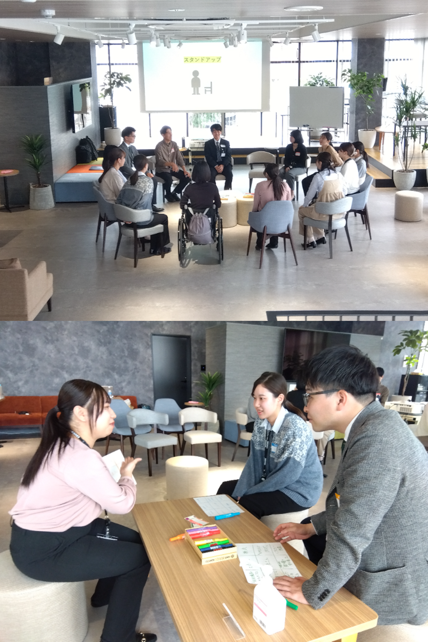 研修のはじめに、外部講師をお招きし、丸1日かけて「伝える」そして「対話する」の基礎を学ぶワークショップを行いました。