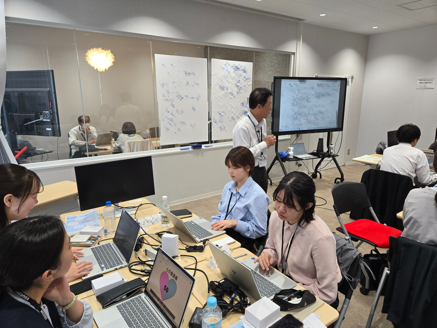 研修の集大成となる企画研修。この2週間で学んできた知識を活かし、グループに分かれてサービスを企画し、プレゼンします。