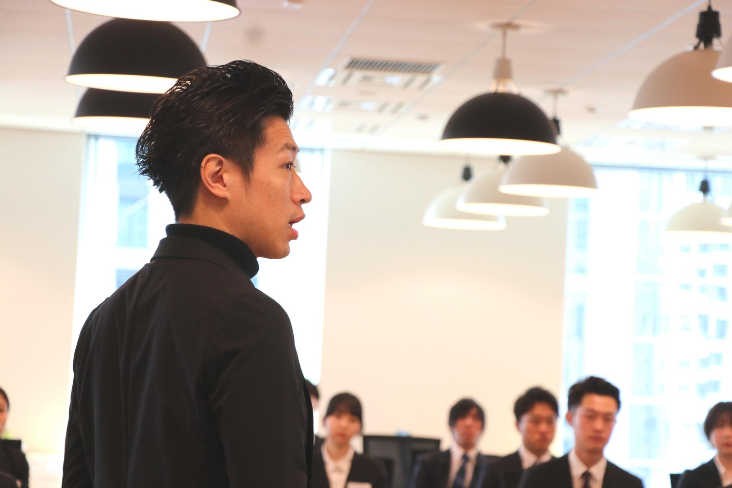 新入社員に必要な『心得』を新卒メンバーに向けて伝えていました。