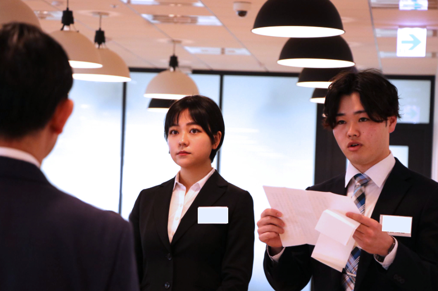 新卒を代表して、23新卒メンバーの長岡さんと倉石さんから、代表取締役の桑内さんへ『決意のメッセージ』が伝えられました。