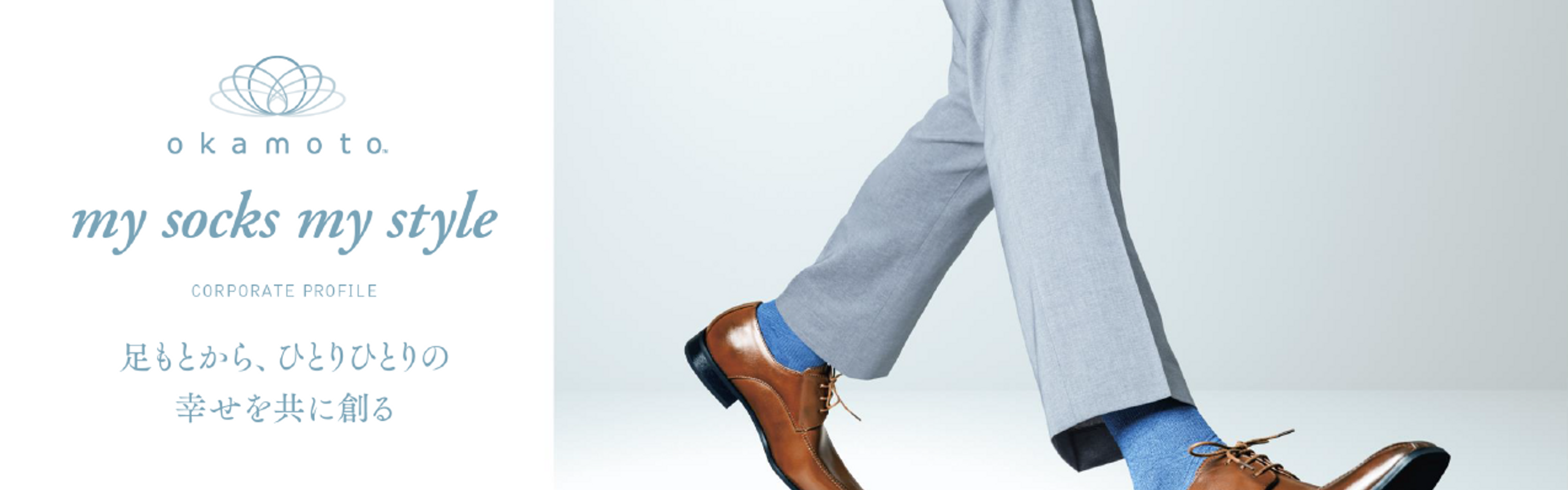 足もとから、ひとりひとりの幸せを共に創る。私たちは、創業者である岡本 久太郎の“人に喜ばれる努力を”という精神のもと、あらゆる世代をターゲットに、機能性・快適性・ファッション性に優れた多彩なラインナップのレッグウェアを企画・製造・販売しているレッグウェアメーカーです。靴下の可能性を信じ、足元の悩みを科学的に解決し、「安心」と「満足」を届けることを追求。靴下製造卸で日本トップシェア(2023年8月10日付繊研新聞に拠る)という確固たる基盤を持ち、機能性商品等の開発で、挑戦的なモノづくりを続けています。