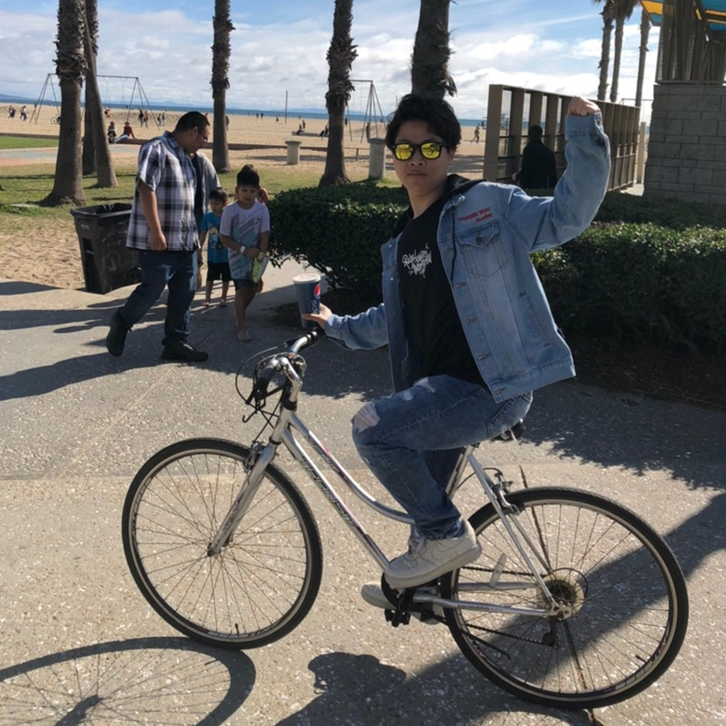 👆自転車に乗りながらガッツポーズ