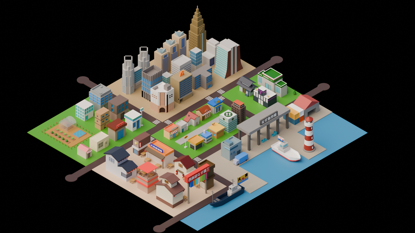 - 環境要素の追加: さらに横丁(横丁追加画像:右中)と市場(海追加画像:左下)もほしいとのことで追加。
