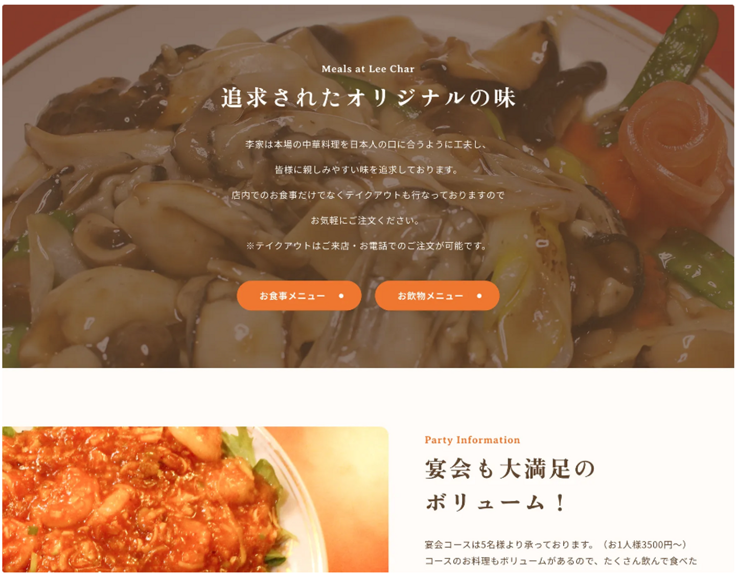 宴会の予約やテイクアウトの注文、求人の問い合わせなどを増加させるために、すぐ電話がかけられるようにヘッダーに配置するなどして、適所に目立つように表示してみました。