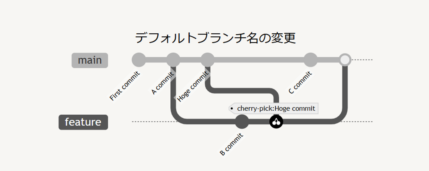 デフォルトブランチ名をmainから変更する方法をまとめる。 %%{init: {'gitGraph': {'mainBranchName': '任意のデフォルトブランチ名'}} }%%のように記載するとデフォルトブランチ名を任意のブランチ名に変更する事ができる。