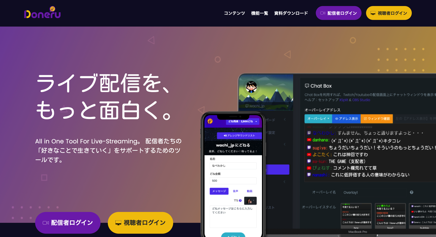 ライブ配信拡張プラットフォーム「Doneru(どねる)」の運営