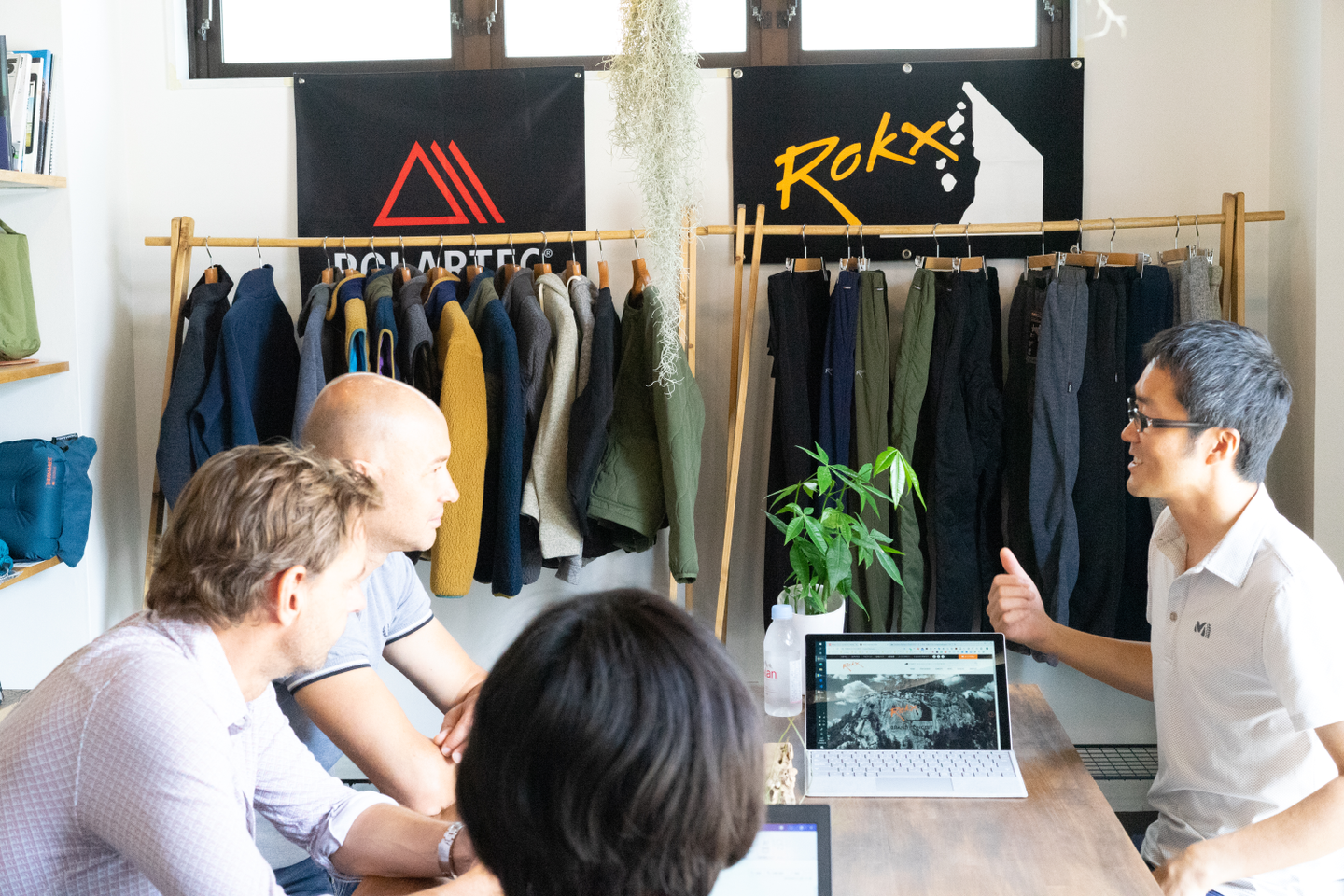 そんなPOLARTECから、EricさんとThomasさんがオフィスにいらっしゃいました。今後の展望や今メーカーとして注力をしていることなど聞かせてもらいました。いちアウトドアファンとして、本当に貴重な体験!