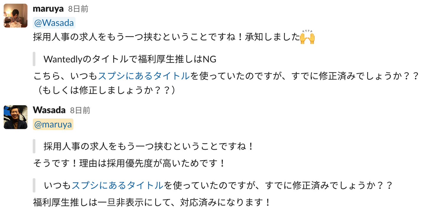 どうですか?Macのスペックの相談から、採用活動を行う上で気になることなど、気軽な粒度の質問から具体的なオペレーションの相談まで、頼りになるサポートメンバーの方々が答えてくれます!これはとっても心強いですよね💪