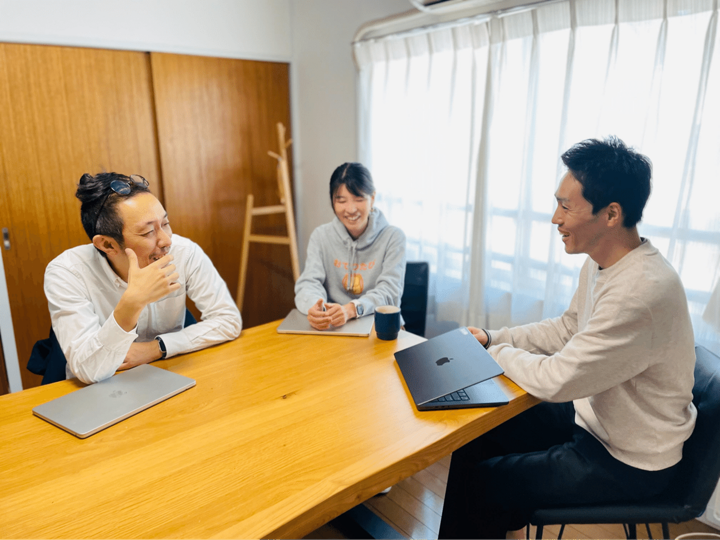 プロダクト戦略顧問(元マクアケ取締役CTO)の生内洋平さん、リードエンジニアの川尻智樹さん、おてつたび代表の永岡里菜さんに、ざっくばらんにお伺いしました!